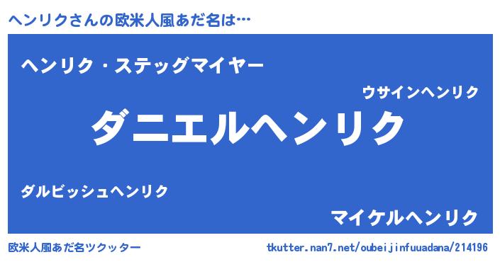 | 男性向けラノベタイトル風あだ名 | 『ノーゲーム・ノーヘンリク』 |