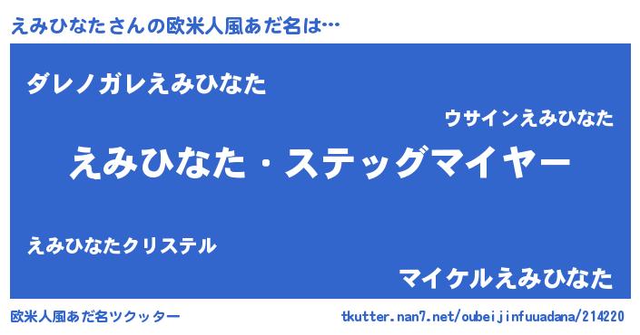 | 意味不明あだ名 | 『住所不定無職えみひなた(56歳)』 |