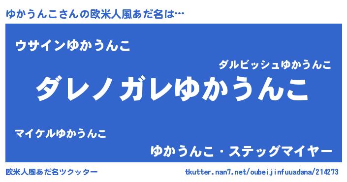 | 男性向けラノベタイトル風あだ名 | 『魔弾の王とゆかうんこ』 |