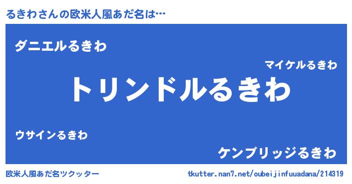 | 男性向けラノベタイトル風あだ名 | 『転生したらるきわだった件』 |