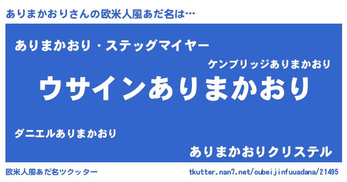| 女子向けラノベタイトル風あだ名 | 『ありまかおりの卵を拾いまして』 |