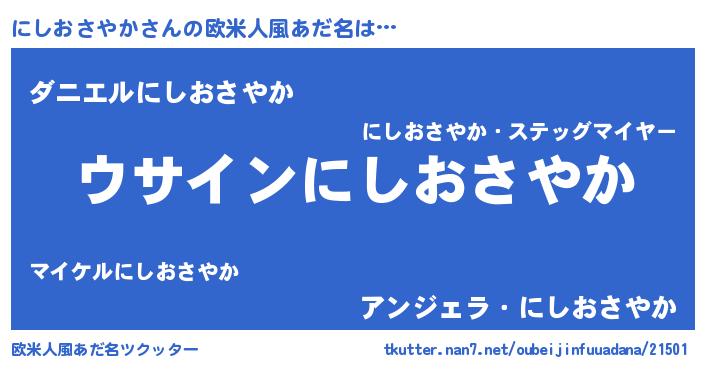 | 男性向けラノベタイトル風あだ名 | 『にしおさやかの嫁は女の子じゃないと思った?』 |