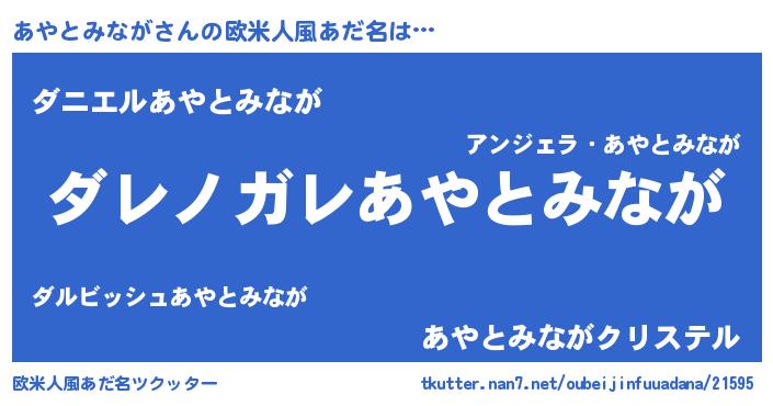 | 男性向けラノベタイトル風あだ名 | 『この素晴らしい世界にあやとみながを!』 |