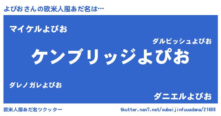 | 女子向けラノベタイトル風あだ名 | 『よぴおストレイドッグス』 |