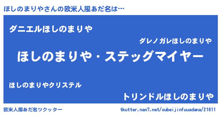 | 女子向けラノベタイトル風あだ名 | 『シンデレラほしのまりや家の靴箱館』 |