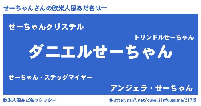 | ヒーロー風カッコイイあだ名 | 『慈愛の使者せーちゃん』『炎刃騎士セー』 |