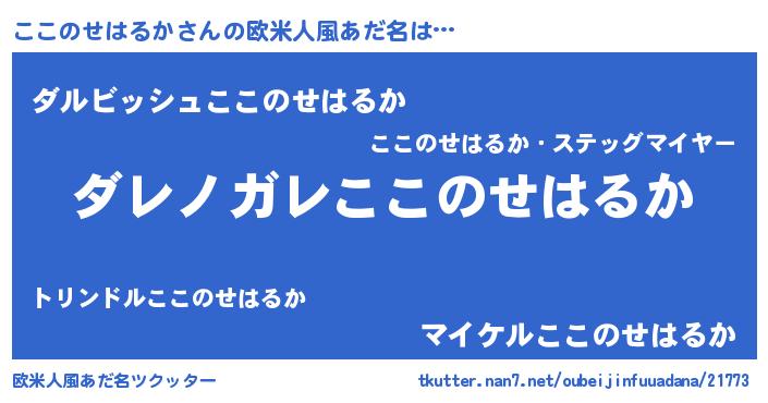 | 男性向けラノベタイトル風あだ名 | 『この素晴らしい世界にここのせはるかを!』 |