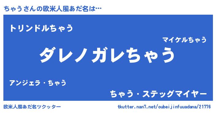 | 男性向けラノベタイトル風あだ名 | 『この素晴らしい世界にちゃうを!』 |