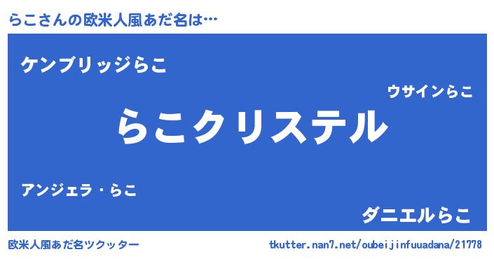 | 女子向けラノベタイトル風あだ名 | 『らこの雑貨屋さん』『らこ恋絵巻』 |