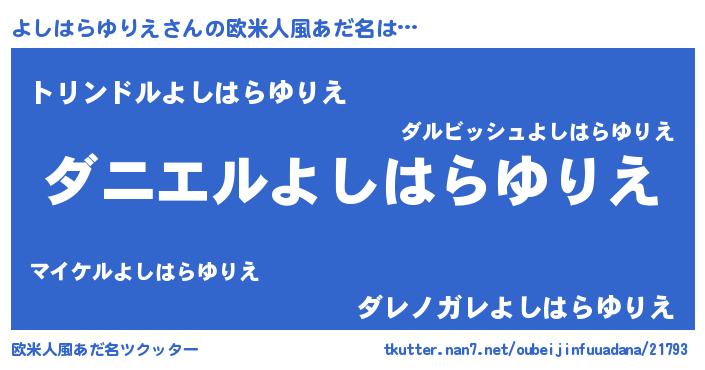| 男性向けラノベタイトル風あだ名 | 『おまえをオタクにしてやるから、俺をよしはらゆりえにしてくれ! 』 |
