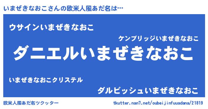 | ヘコむあだ名 | 『いまぷりん』『いまぜきなおこ(笑)』 |