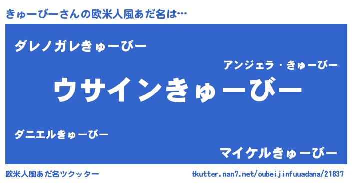 | 女子向けラノベタイトル風あだ名 | 『きゅーびーの卵を拾いまして』 |