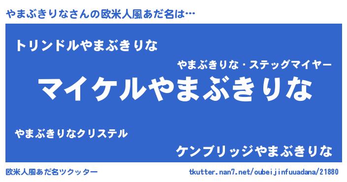 | 男性向けラノベタイトル風あだ名 | 『ヤマブキリナアートオンライン』 |