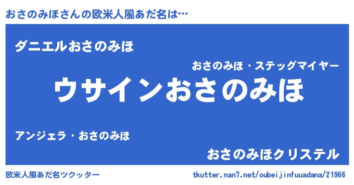 | 女子向けラノベタイトル風あだ名 | 『おさのみほの卵を拾いまして』 |