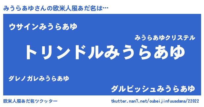 | ポケモン風あだ名 | 『ミウキング』『ヒミウラアユ』 |