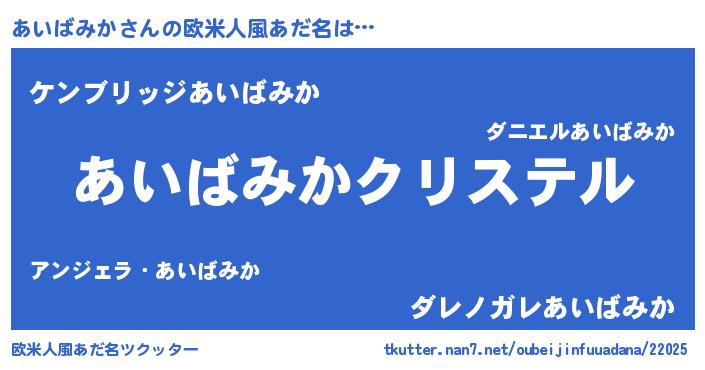 | 意味不明あだ名 | 『あいばみかフォーエバー』 |