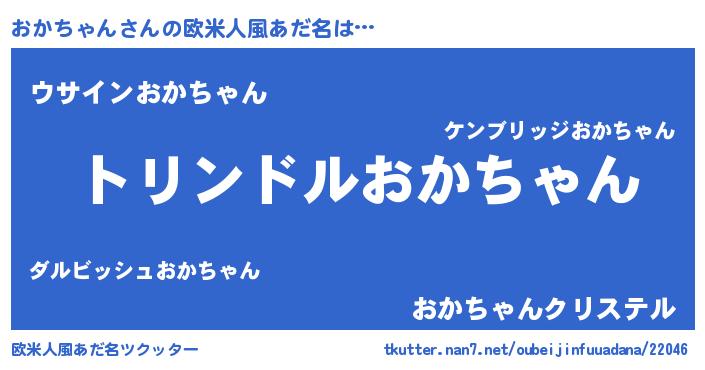 | 男性向けラノベタイトル風あだ名 | 『おかちゃん~年齢イコール彼女いない歴の魔法使い~』 |