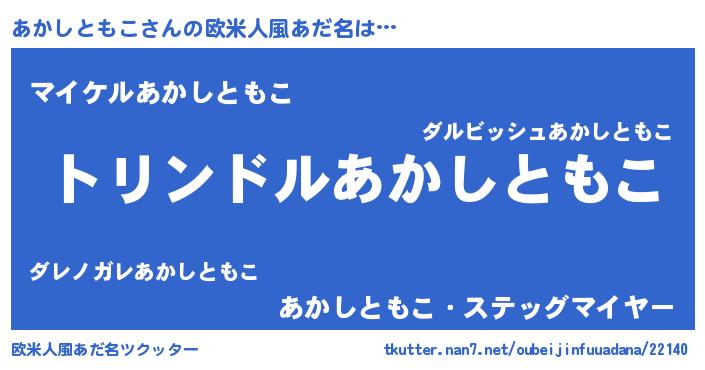 | 男性向けラノベタイトル風あだ名 | 『転生したらあかしともこだった件』 |