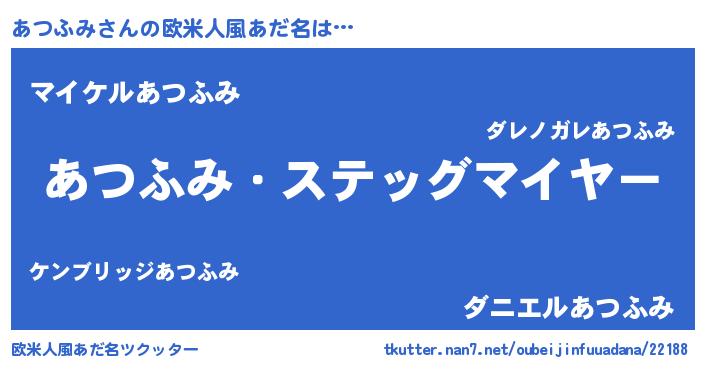 | 男性向けラノベタイトル風あだ名 | 『緋弾のアツフミ』『あつふみの憂鬱』 |