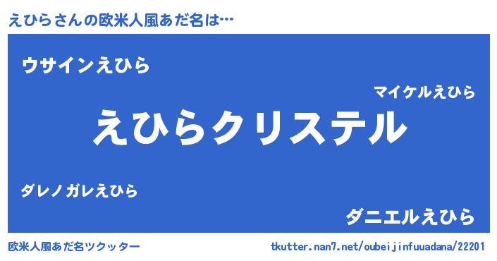 | 意味不明あだ名 | 『えひらフォーエバー』『ペロリンえひら』 |