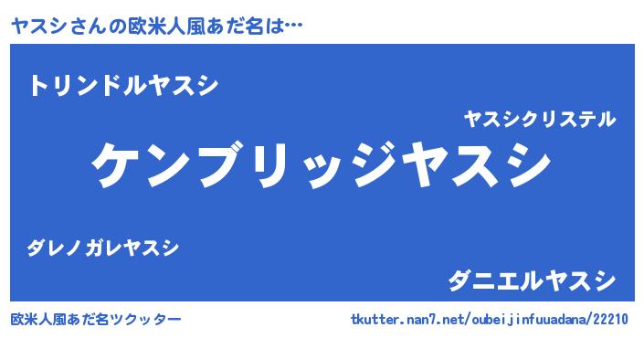 | ヒーロー風カッコイイあだ名 | 『超時空戦士ヤスシ』『慈愛の使者ヤスシ』 |