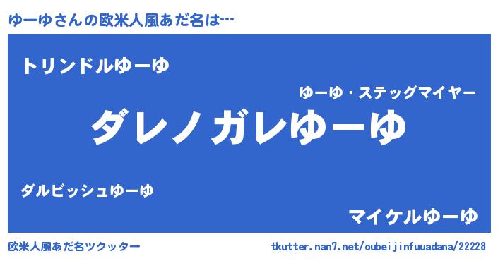 | 男性向けラノベタイトル風あだ名 | 『この素晴らしい世界にゆーゆを!』 |