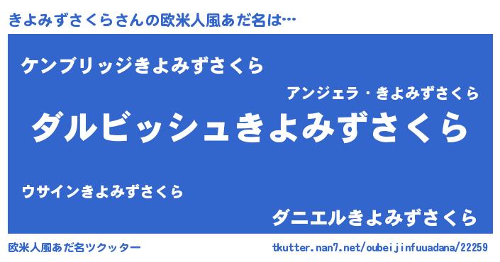 | 伝説のあだ名 | 『古より伝わる吟遊詩人きよみずさくら』 |