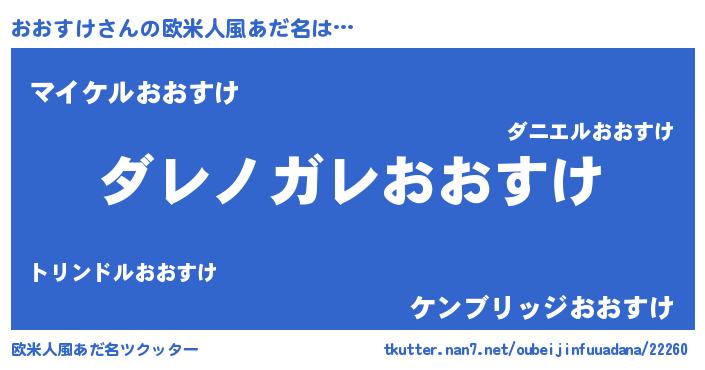 | 意味不明あだ名 | 『住所不定無職おおすけ(2歳)』 |