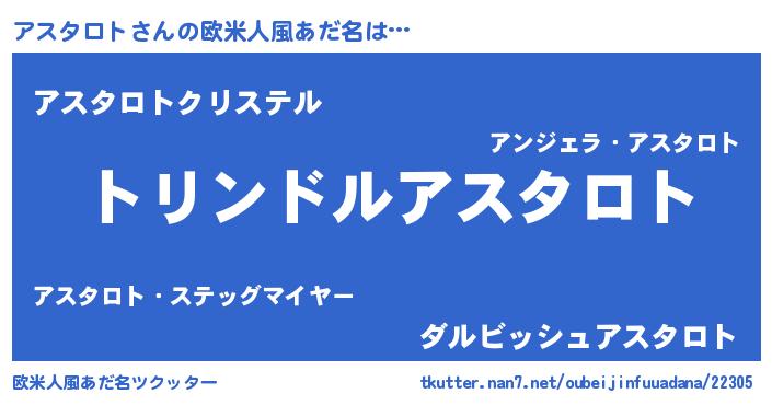 | 女子向けラノベタイトル風あだ名 | 『アスタロトの玉の輿計画!』 |