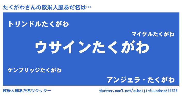 | 意味不明あだ名 | 『とにかく怪しいたくがわ』 |