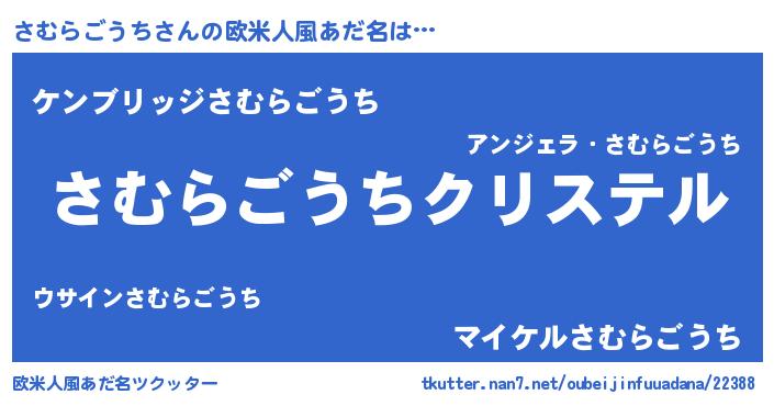 | 男性向けラノベタイトル風あだ名 | 『やはりさむらごうちの青春ラブコメはまちがっている 』 |