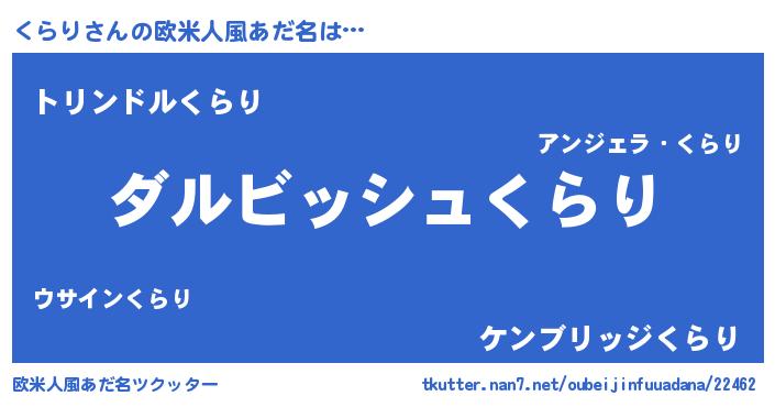 | 女子向けラノベタイトル風あだ名 | 『くらりの契約王妃』『くらり様がみてる』 |