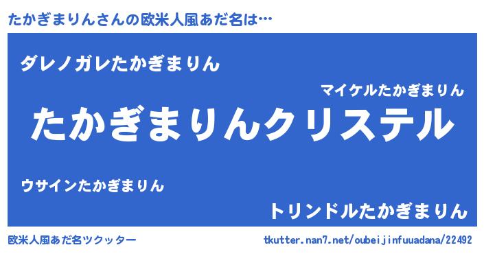 | 男性向けラノベタイトル風あだ名 | 『やはりたかぎまりんの青春ラブコメはまちがっている 』 |