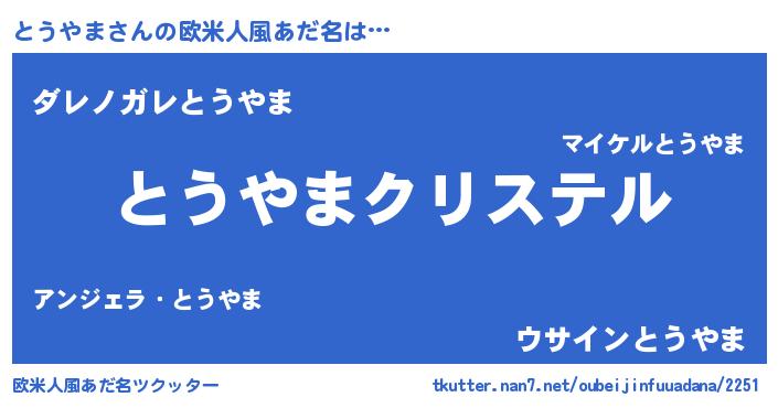 | ファンタジー風あだ名 | 『エターナルトウヤマー』『トウフェル』 |
