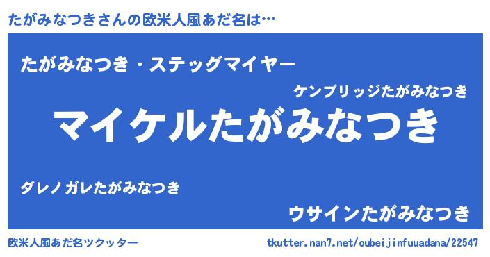 | 男性向けラノベタイトル風あだ名 | 『たがみなつきの憂鬱』 |