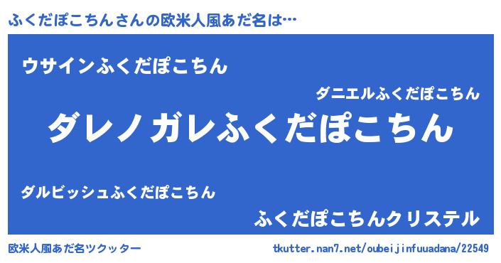 | 女子向けラノベタイトル風あだ名 | 『乙女ゲームの破滅フラグしかない悪役ふくだぽこちんに転生してしまった…』 |