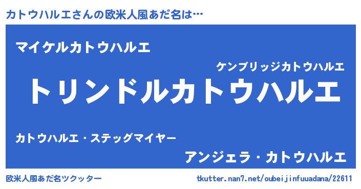 | 男性向けラノベタイトル風あだ名 | 『カトウハルエスレイヤー』 |
