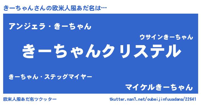 | 男性向けラノベタイトル風あだ名 | 『やはりきーちゃんの青春ラブコメはまちがっている 』 |