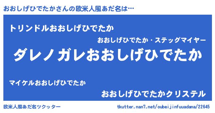 | 男性向けラノベタイトル風あだ名 | 『この素晴らしい世界におおしげひでたかを!』 |