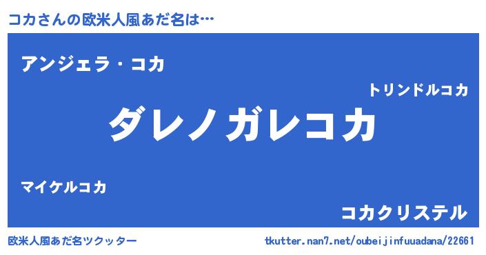 | 男性向けラノベタイトル風あだ名 | 『この素晴らしい世界にコカを!』 |