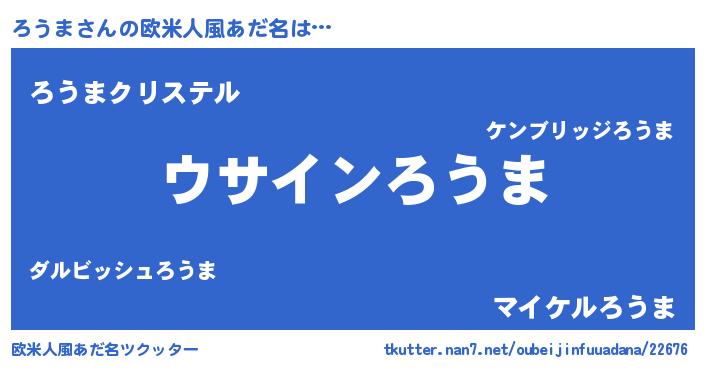 | 男性向けラノベタイトル風あだ名 | 『ろうまの嫁は女の子じゃないと思った?』 |