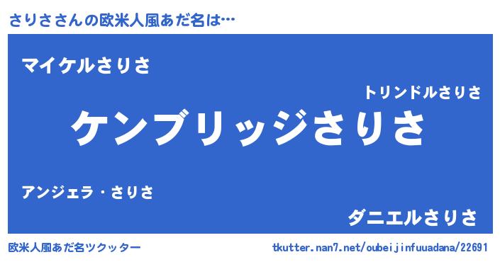 | 男性向けラノベタイトル風あだ名 | 『Re:さりさから始める異世界生活』 |