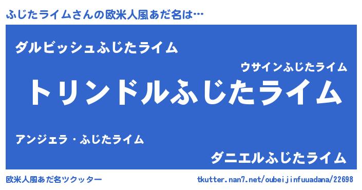 | 男性向けラノベタイトル風あだ名 | 『ふじたライム~年齢イコール彼女いない歴の魔法使い~』 |
