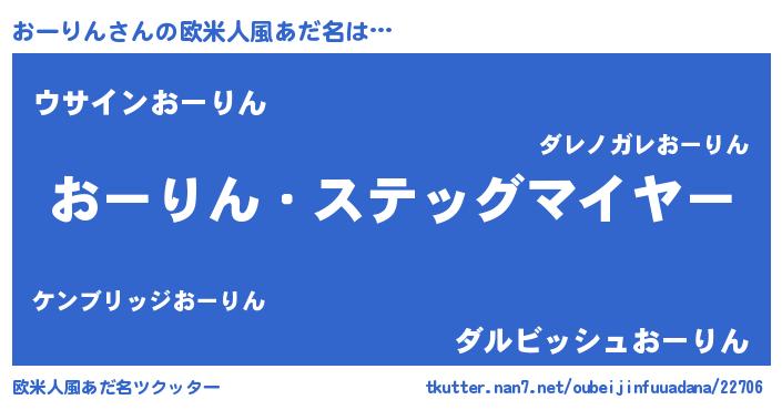 | 男性向けラノベタイトル風あだ名 | 『うちのおーりんが世界を掌握している!』 |