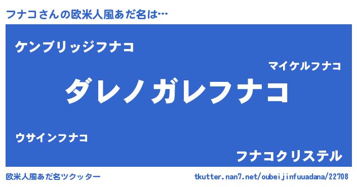 | 男性向けラノベタイトル風あだ名 | 『この素晴らしい世界にフナコを!』 |