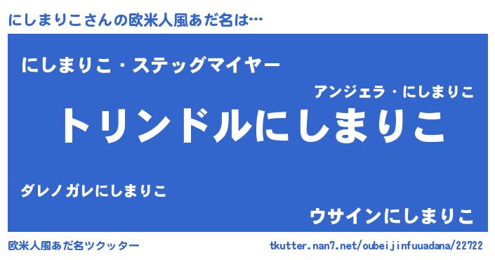 | 男性向けラノベタイトル風あだ名 | 『ニシマリコスレイヤー』 |