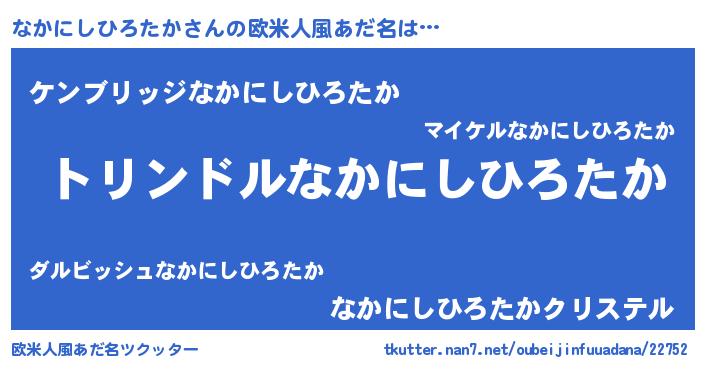 | 男性向けラノベタイトル風あだ名 | 『なかにしひろたか~年齢イコール彼女いない歴の魔法使い~』 |