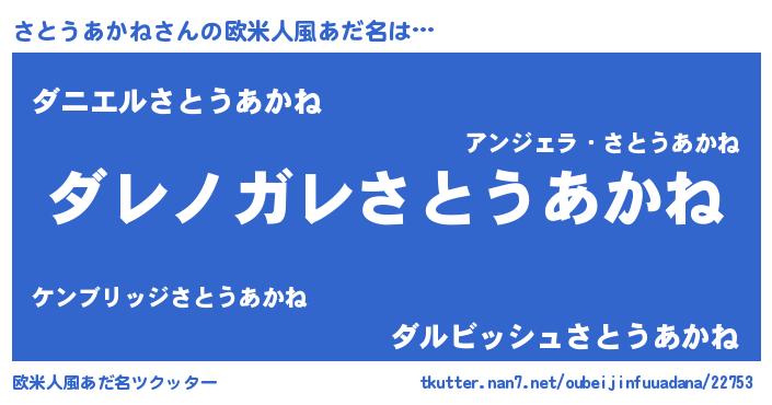 | 男性向けラノベタイトル風あだ名 | 『魔弾の王とさとうあかね』 |