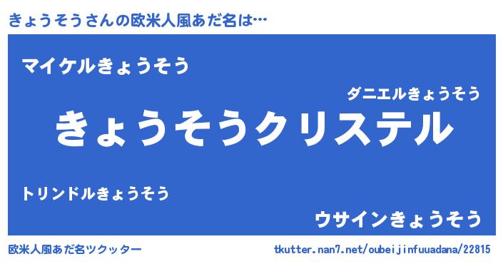 | ファンタジー風あだ名 | 『エターナルキョウソウー』『キョフェル』 |