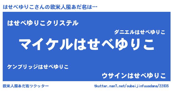| 男性向けラノベタイトル風あだ名 | 『ハセベユリコアートオンライン』 |